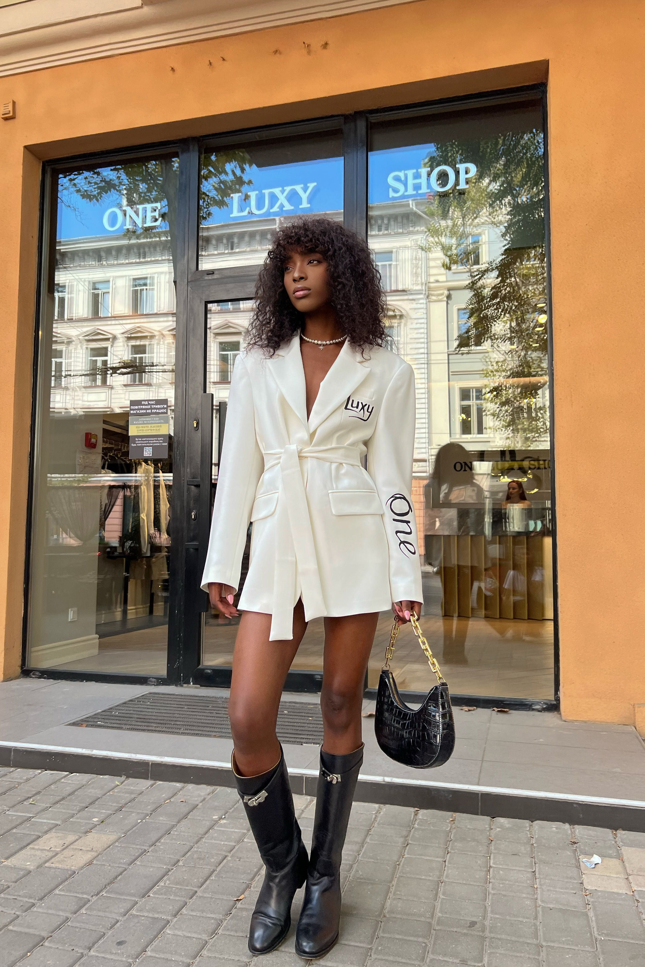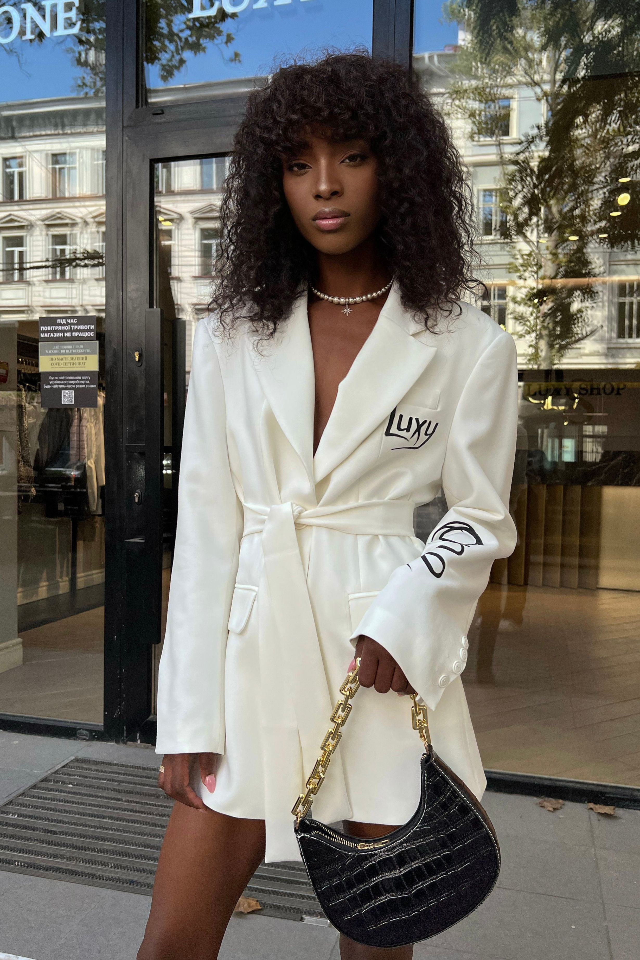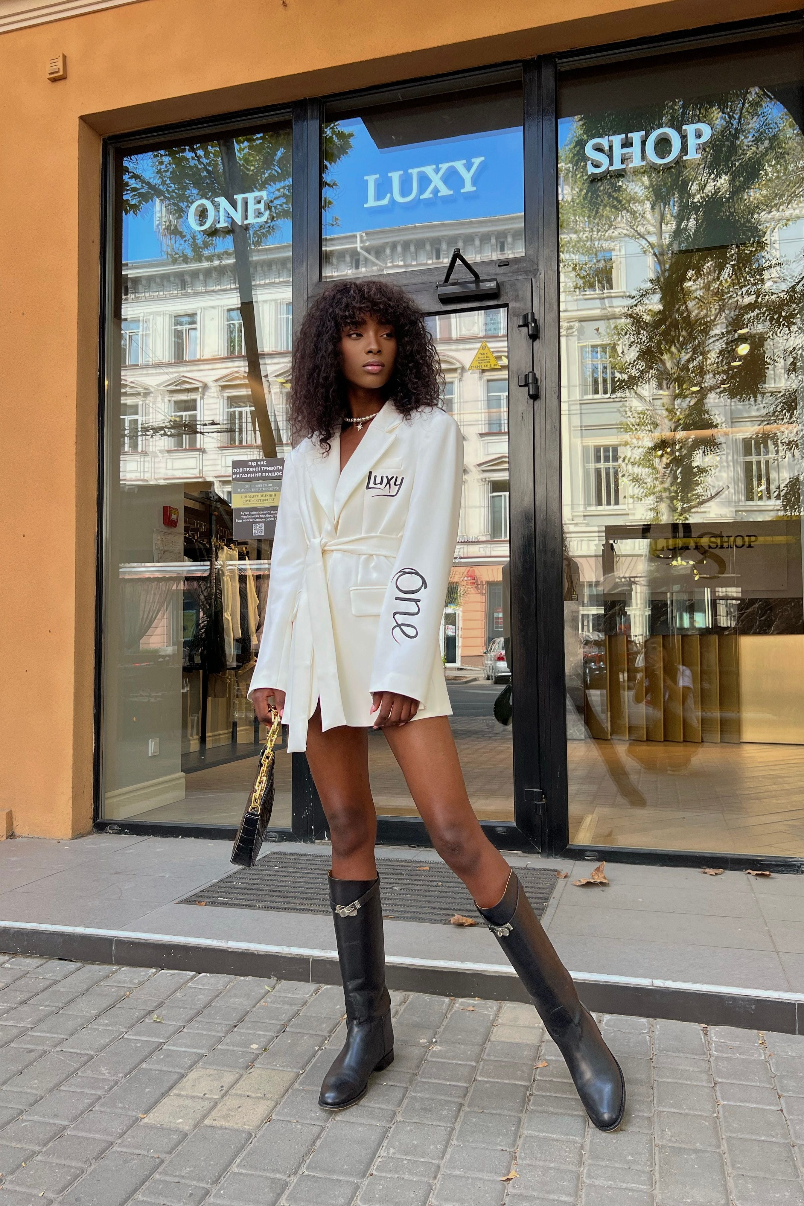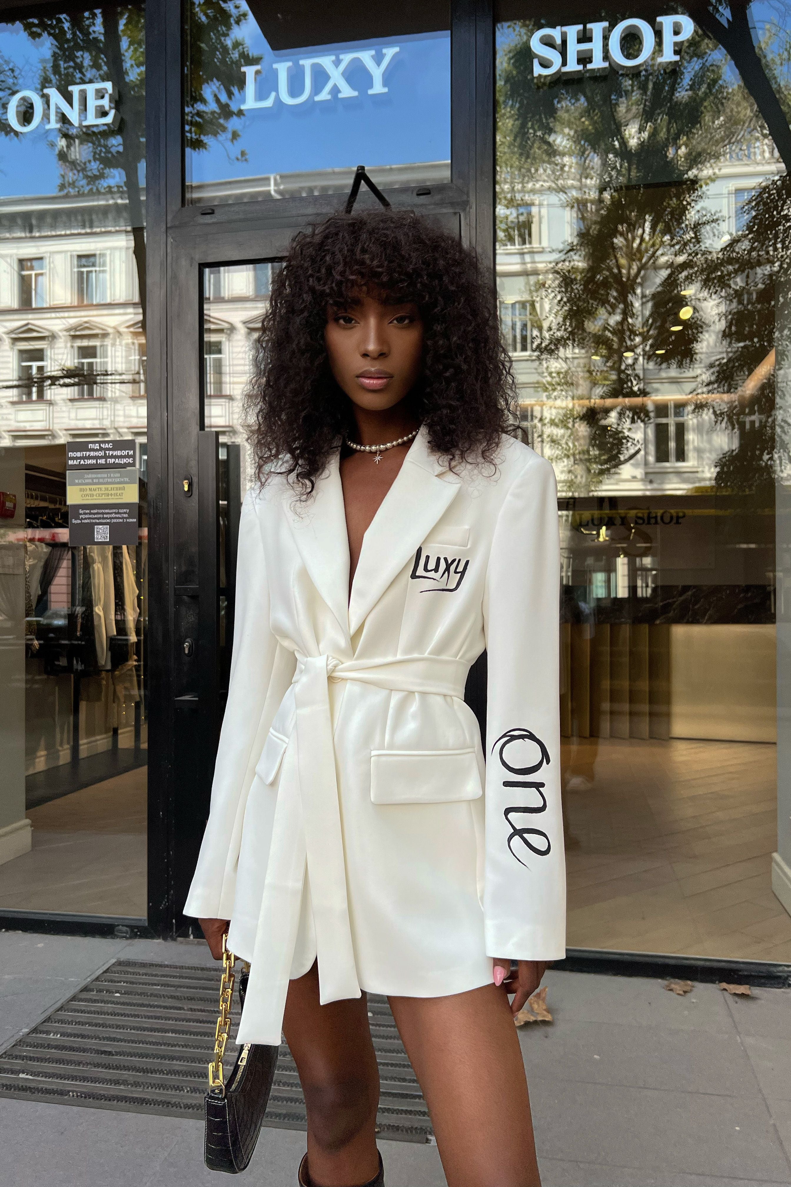 Унікальність, яка говорить без слів. Цей піджак від One Luxy Shop — не просто елемент гардеробу, а справжній арт-об'єкт. Класичний оверсайз-крій у поєднанні з авторським ручним розписом створює виразний образ із характером. Кожен мазок — індивідуальний, тож жоден виріб не повторюється. У комплекті — пояс з тієї ж тканини, який дозволяє трансформувати силует за настроєм.