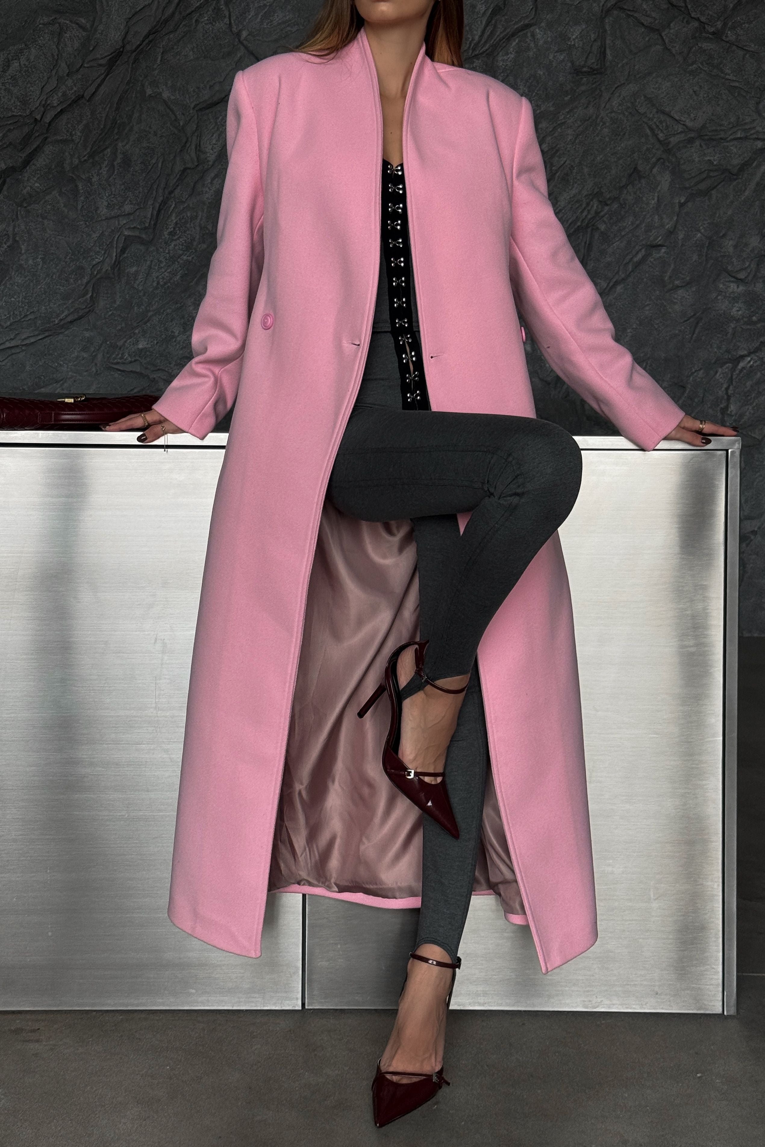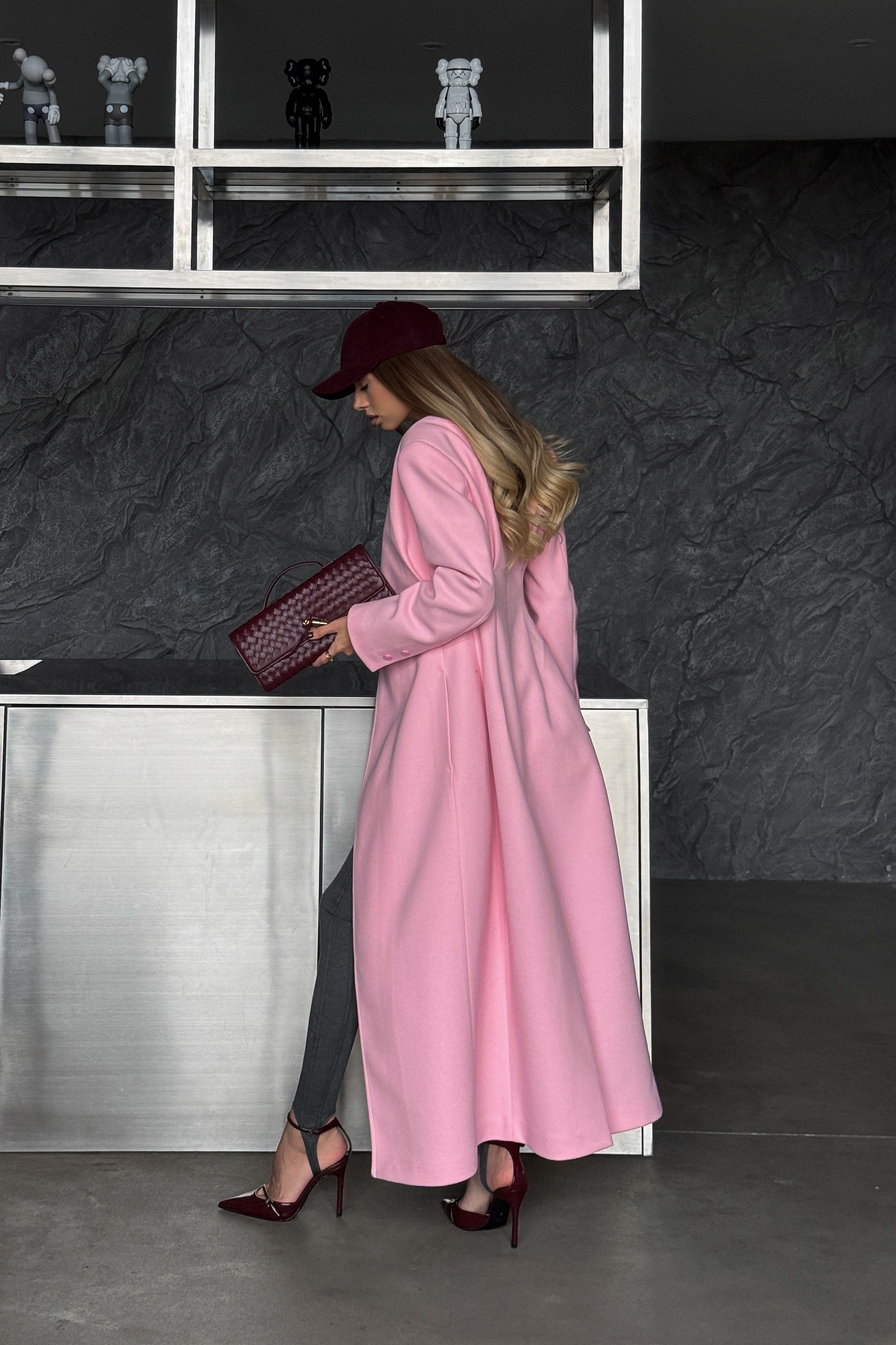 Елегантне довге пальто створене для тих, хто обирає стиль, комфорт і впевненість у кожному русі. Силует прямий, із витонченими лініями, що візуально подовжують фігуру. Завдяки акуратному крою пальто ідеально сидить як у відкритому, так і у застібнутому вигляді. Колір — ніжно-рожевий, додає образу жіночності та сучасності.