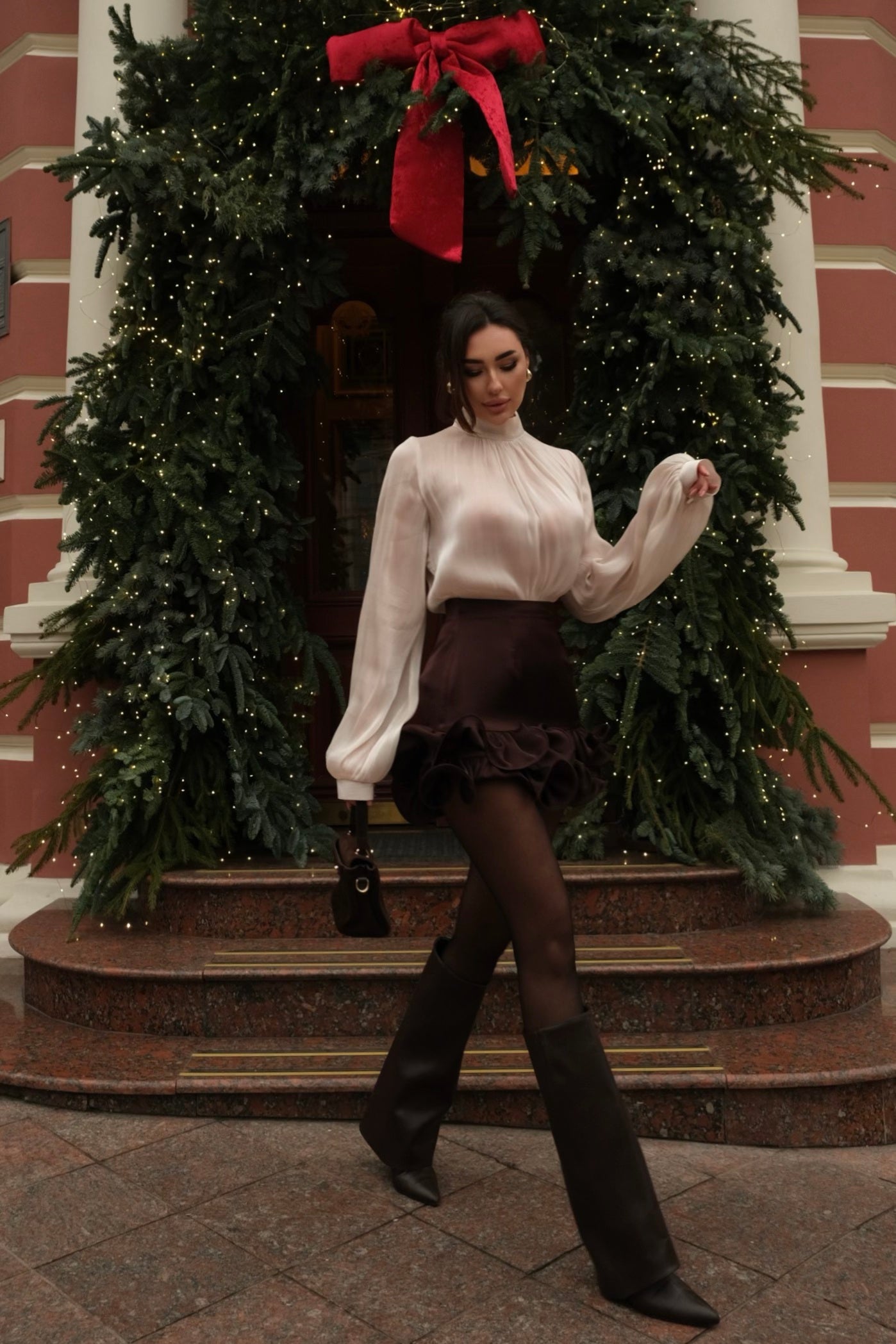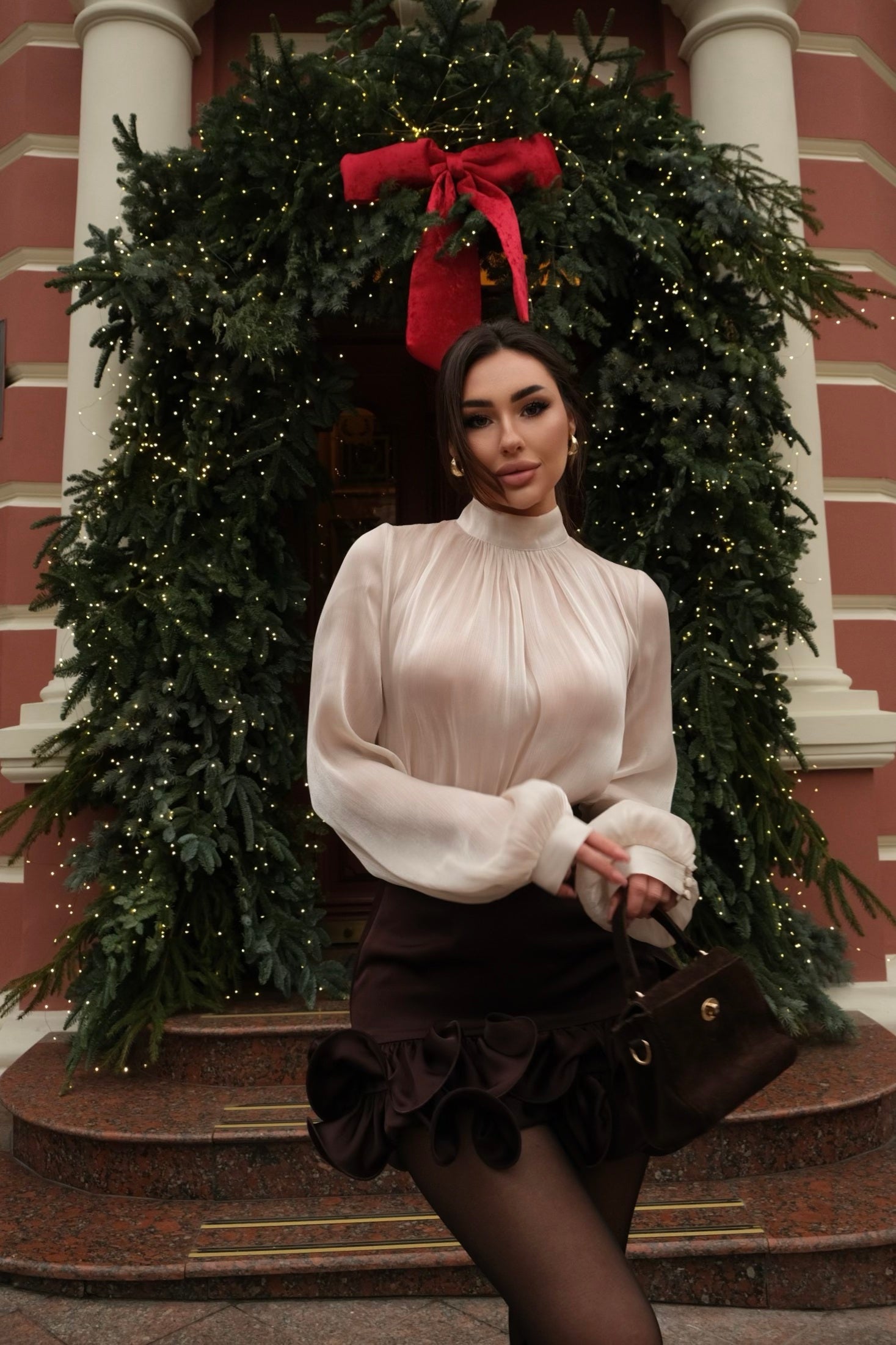 This light and shiny organza blouse will perfectly complement your outfits. Note how harmoniously the blouse goes with our silk skirts.