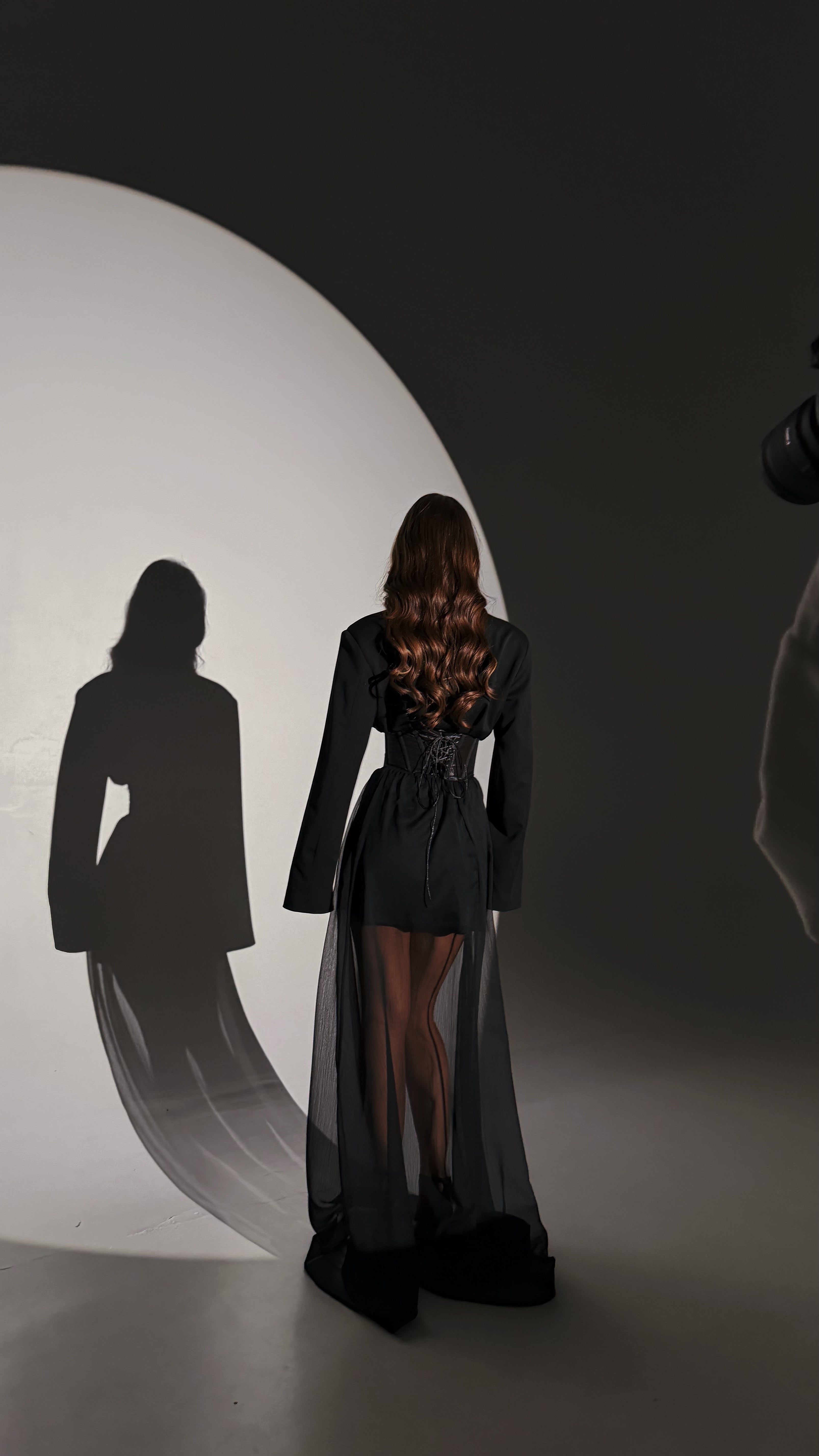 This elegant maxi skirt made of lightweight semi-transparent fabric creates a sophisticated and modern silhouette. The model moves beautifully when walking, adding lightness and femininity to your look. It pairs perfectly with both basic tops and accent pieces. Suitable for evening outings, photo shoots, or stylish events. Please note: the jacket shown in the photo is also available to order and perfectly complements the look, creating a complete total look.