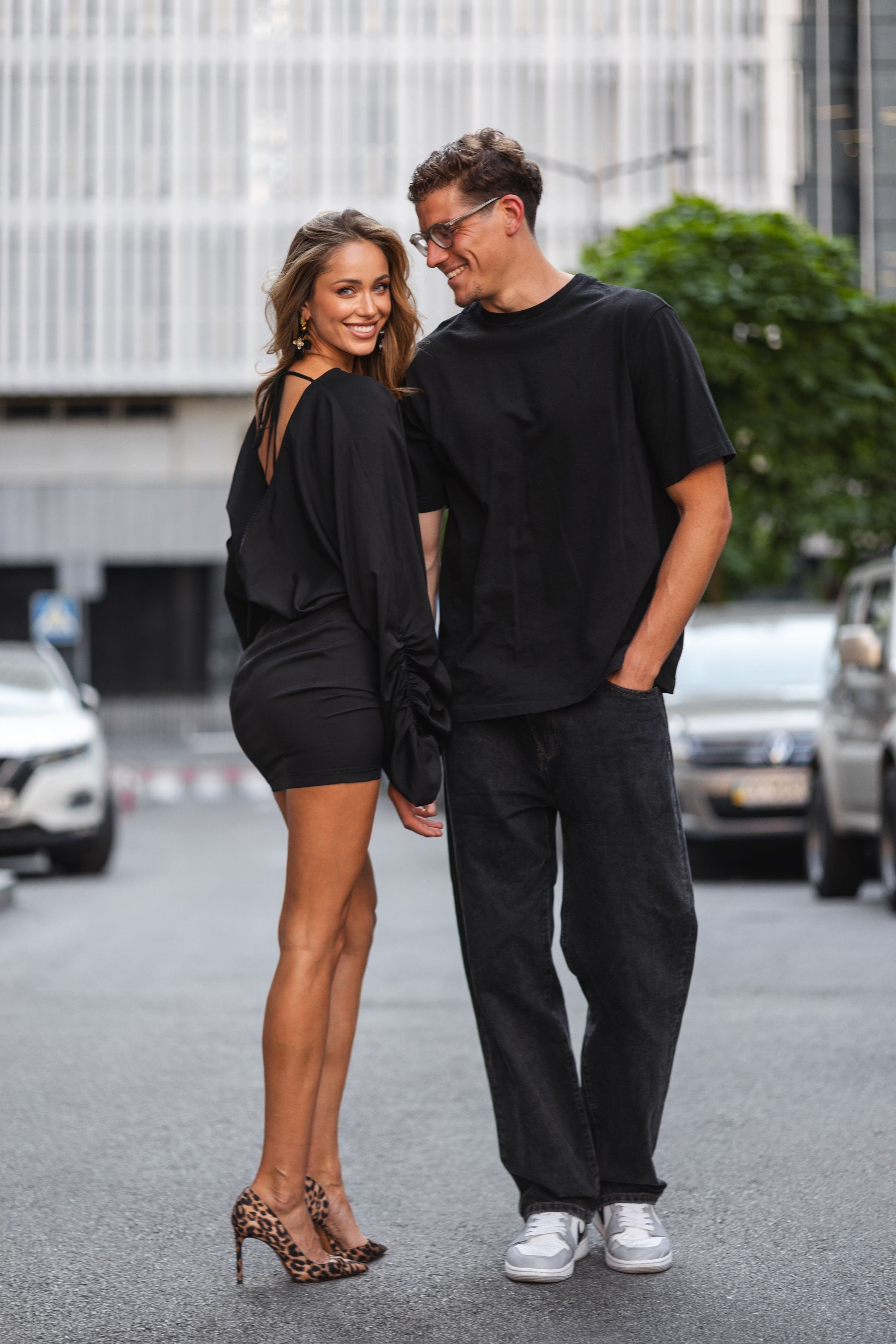 Елегантна та жіночна сукня, яка ідеально поєднує об’ємний верх із лаконічним, облягаючим низом. Верх моделі має м’який, струмливий силует із довгими рукавами та глибоким вирізом на спинці, що додає образу витонченості та легкого акценту на сексуальність.Низ сукні щільно прилягає до тіла, вигідно підкреслюючи фігуру. Драпірування з боків візуально формує ідеальні пропорції та додає текстурного акценту. Така модель виглядає ефектно з будь-якого ракурсу й підходить як для особливих подій, так і для вечірніх виходів.