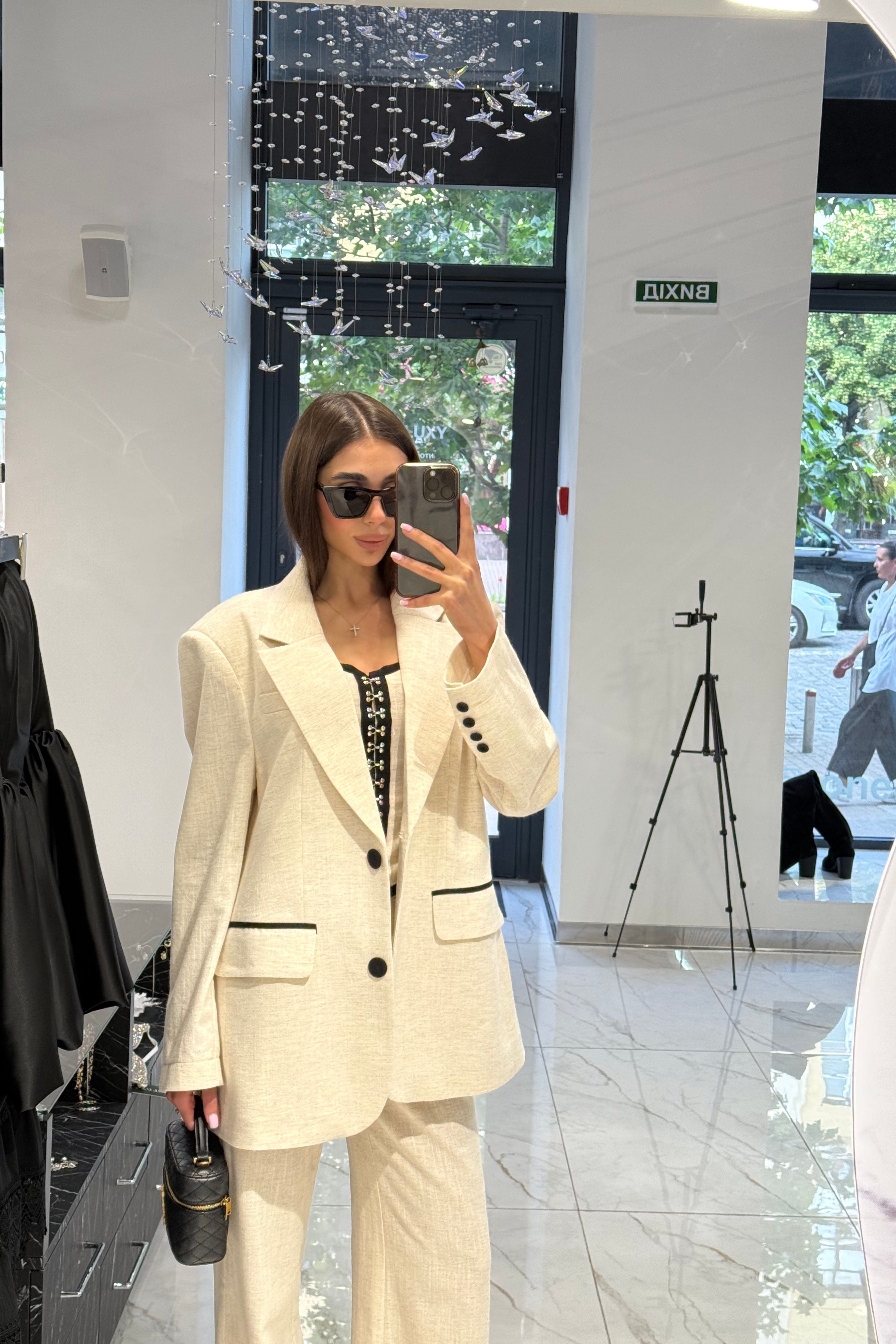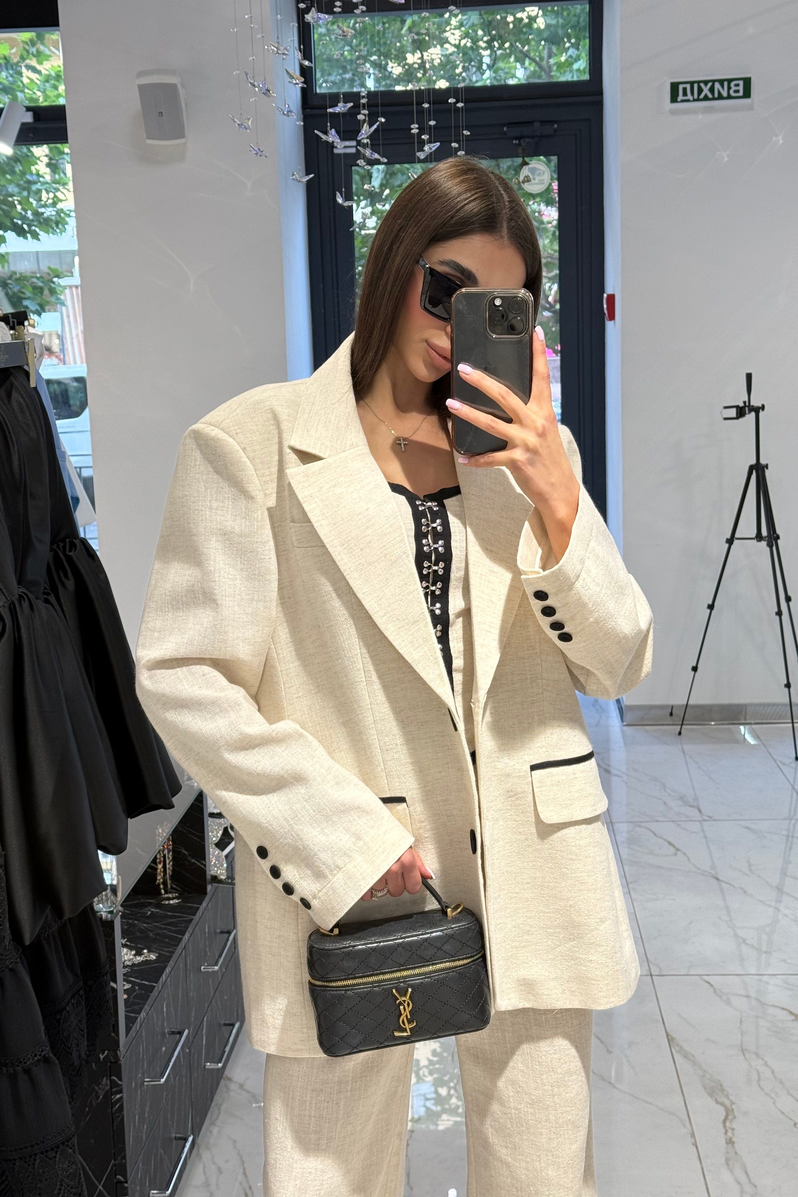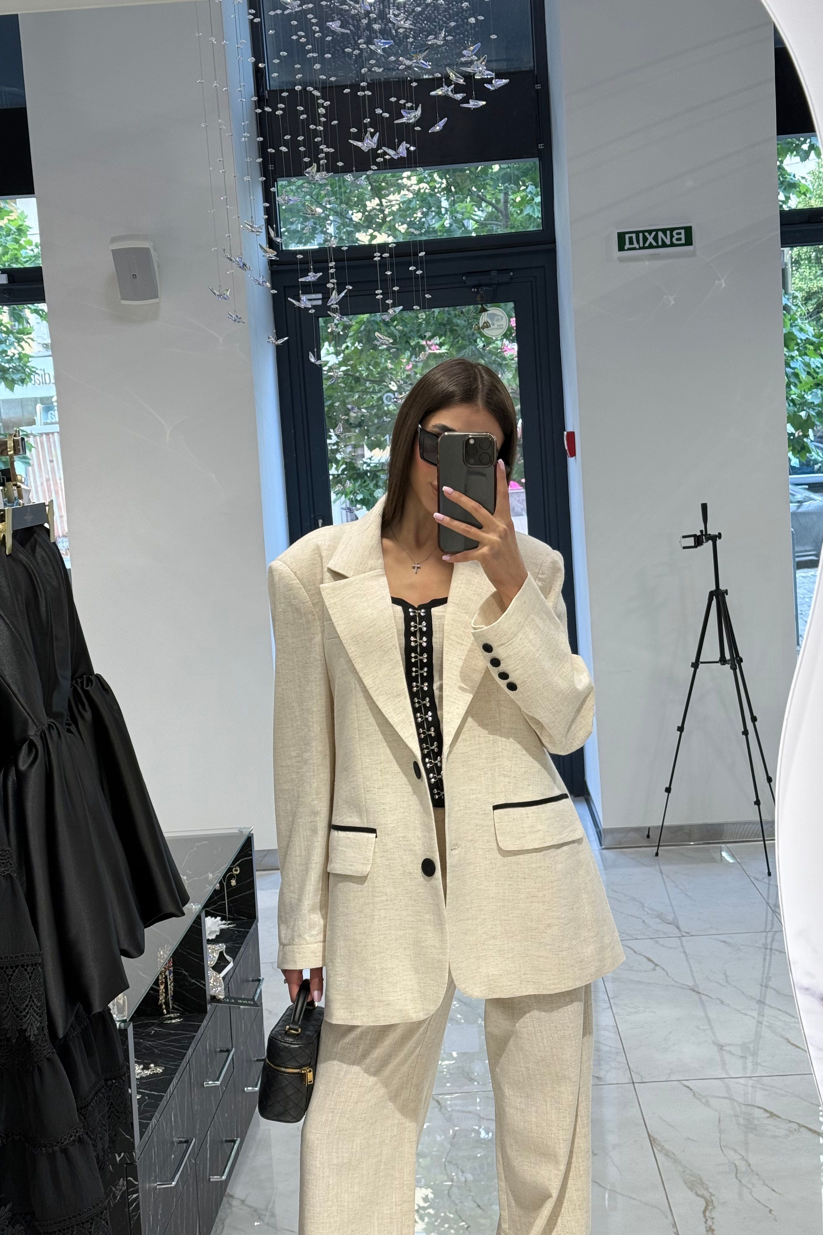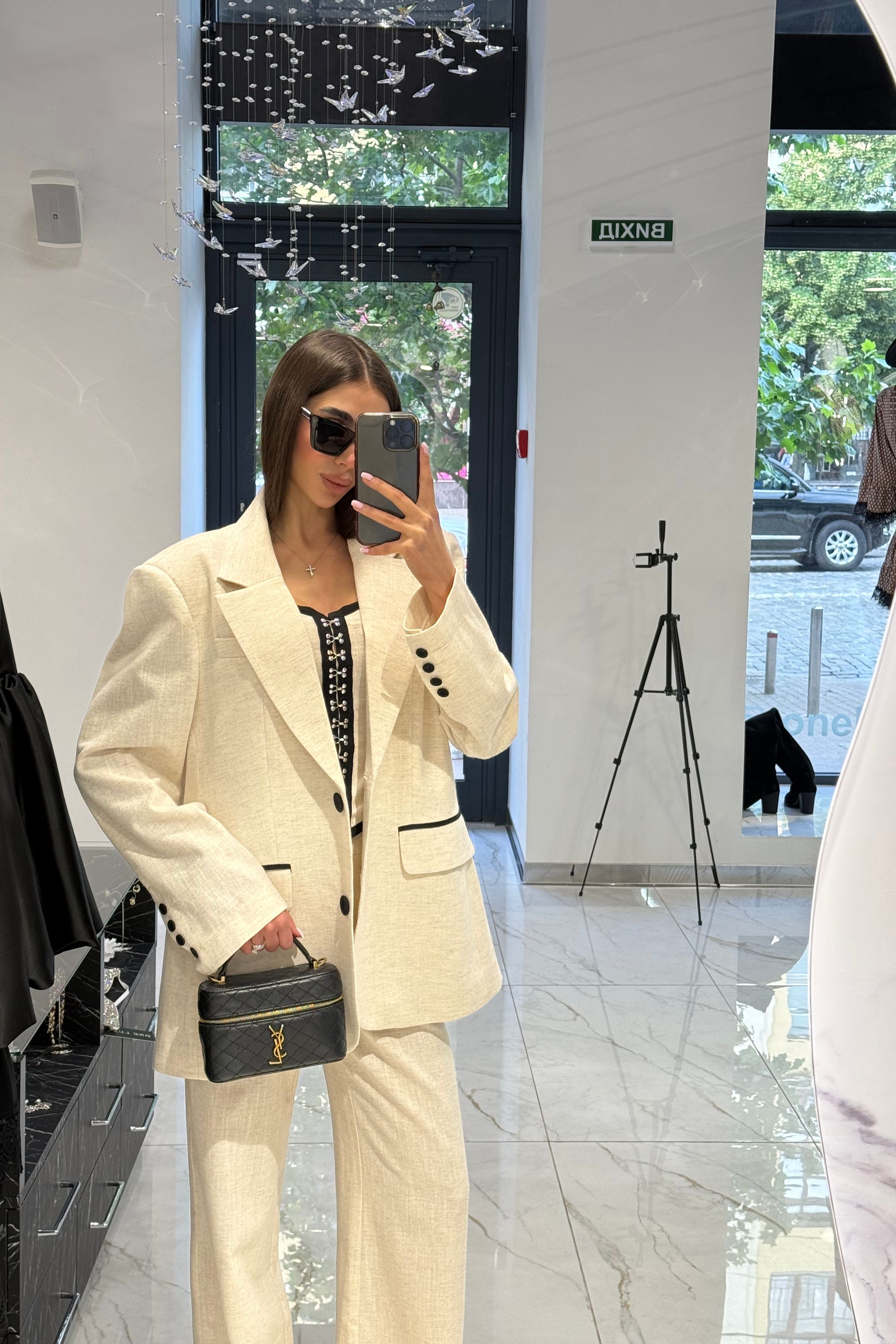 Цей оверсайз піджак з натурального льону — універсальна база для літнього гардеробу. Завдяки вільному крою та легкому, дихаючому матеріалу він дарує максимальний комфорт і виглядає стильно без зайвих зусиль.