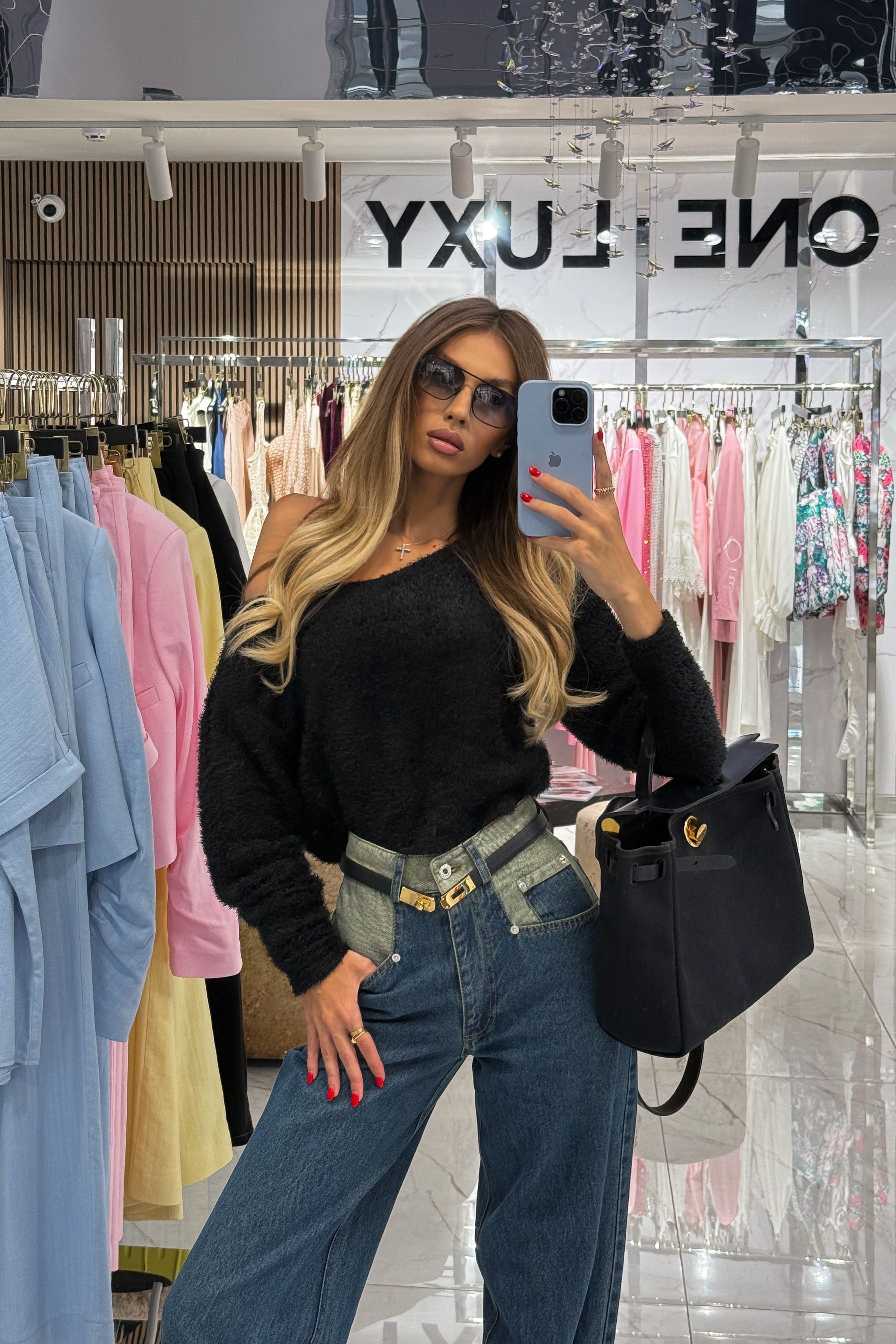 Затишний, м'який та стильний — чорний светр з ефектної пряжі «травка» стане улюбленим елементом вашого гардероба у холодну пору року. Його вільний крій дарує комфорт і свободу рухів, а фактурна пряжа додає образу об'єму та візуальної глибини.Ця модель ідеально підходить для повсякденних образів у стилі casual або як акцент у більш вишуканому луці з акцентом на текстури.
