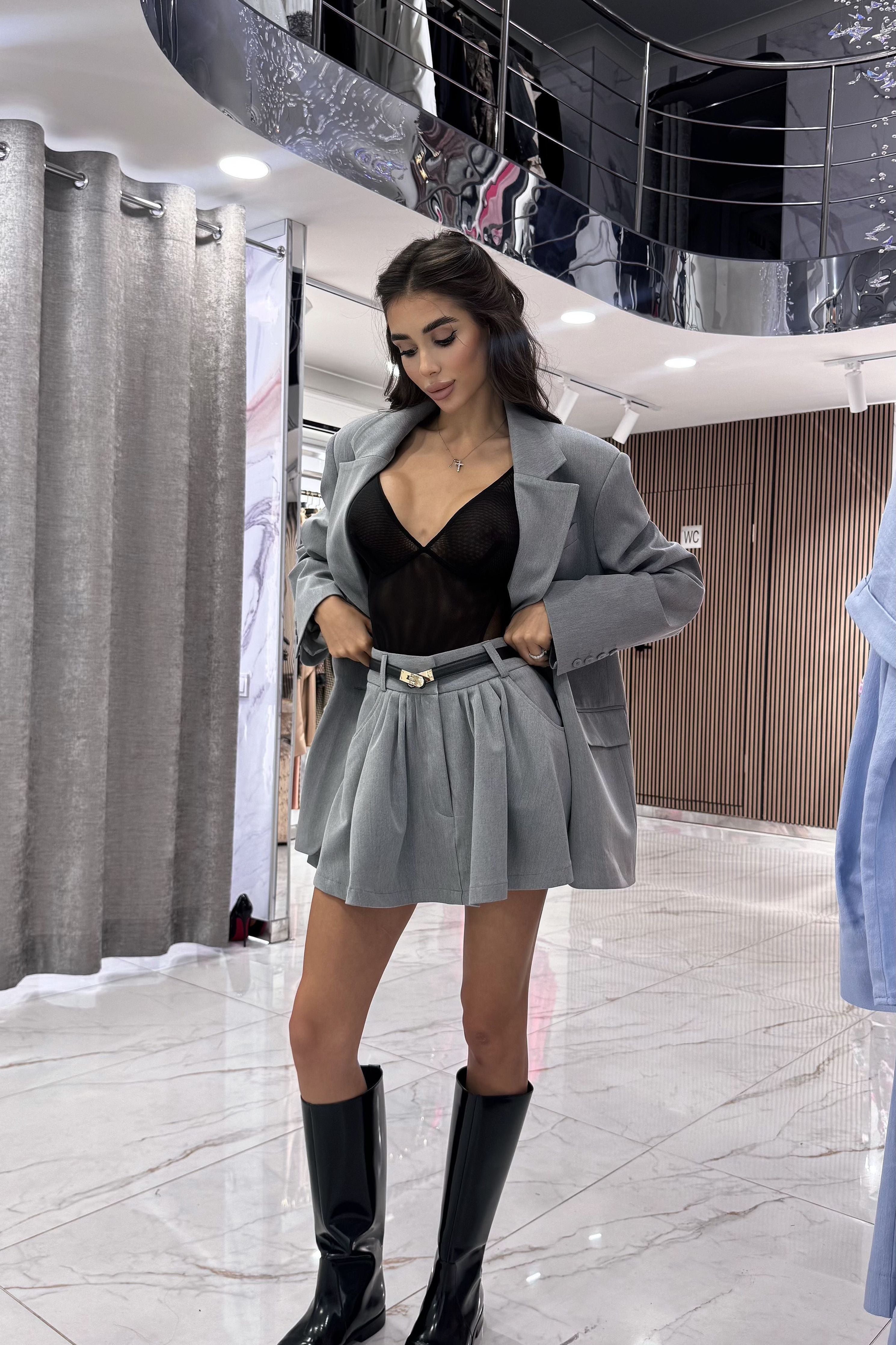 Сучасна міні-спідниця з акцентними складками — ідеальний варіант для створення стильного та впевненого образу. Виготовлена з якісної костюмної тканини, вона тримає форму, має комфортну посадку на талії .Для повного комплекту у нас також є піджак oversize крою з такої ж тканини. Разом вони створюють трендовий костюм, який ідеально підійде для офісу, прогулянки містом чи модного заходу